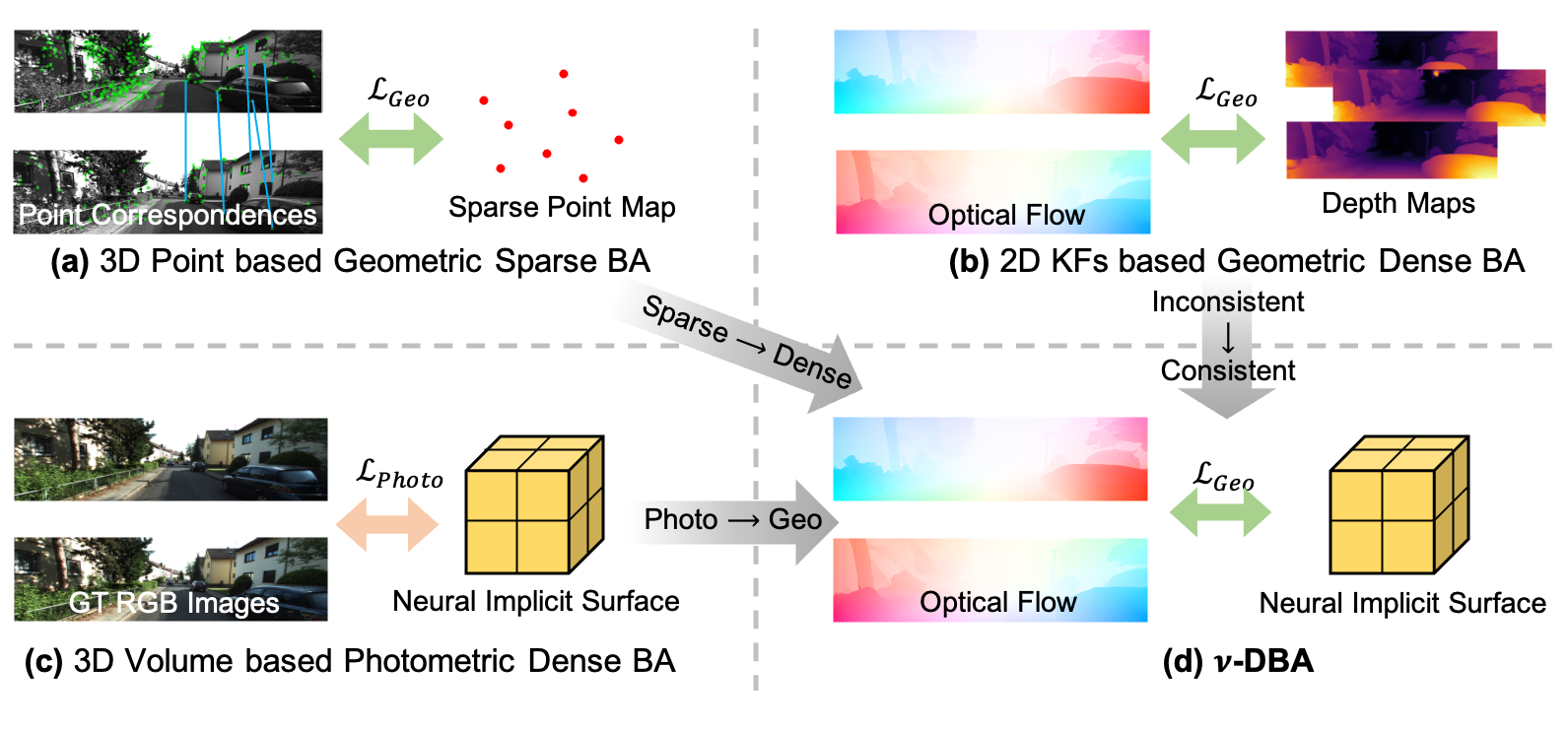 ν-DBA: Neural Implicit Dense Bundle Adjustment Enables Image-Only Driving Scene Reconstruction